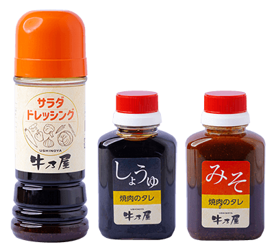 ご家族やご友人、大切な方との素敵なひと時を、ぜひ牛乃屋でお楽しみください。厳選した最高の肉とともに、こだわりの一品料理なども多彩に取り揃えて、皆さまのお越しをお待ちしております。 営業時間/17:00〜22:00(オーダーストップPM21:30) tel.0983 23 2750 セット・盛り合わせ 単品 焼肉 刺・キムチ・サラダ・焼野菜・肴 冷麺・飯・雑炊・スープ ドリンク・デザート 牛乃屋オリジナルのサラダドレッシング(¥428)と焼肉のタレ(みそ・しょうゆ各¥400)牛乃屋全店にて販売しております。 牛乃屋のこだわり 宮崎牛や鹿児島黒牛など、高級素材の霜降りと赤身肉をバランスよく焼き上げるのが牛乃屋流。「いいお肉を、より美味しく。」の信念で皆様のお越しをお待ちしています。